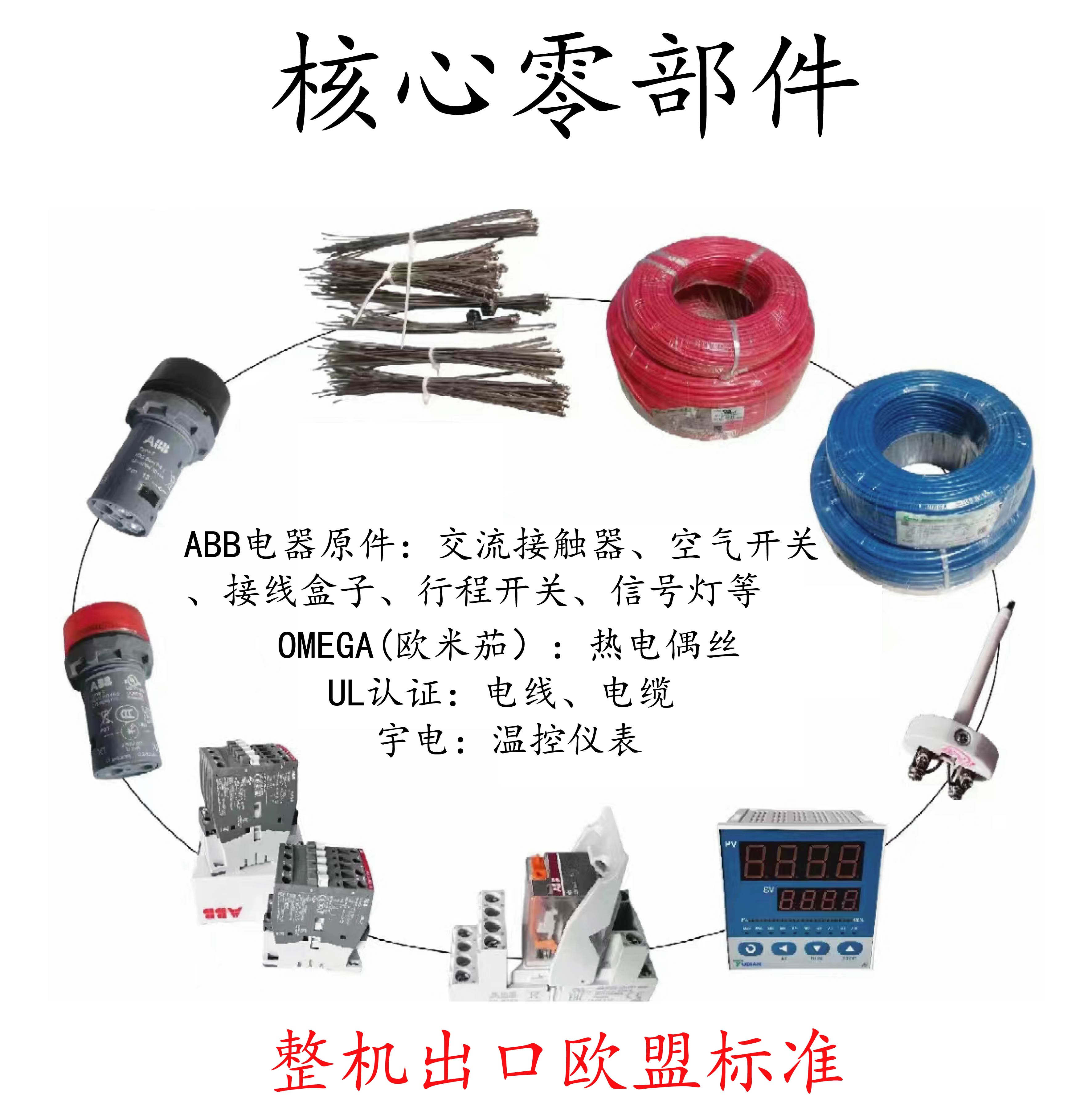 認(rèn)證標(biāo)準(zhǔn)及核心零部件 | ? 核心零部件有ABB、OMEGA、東明等; ? 采用ABB電器元件,UL認(rèn)證材料,出口歐盟的質(zhì)量認(rèn)證標(biāo)準(zhǔn); |
