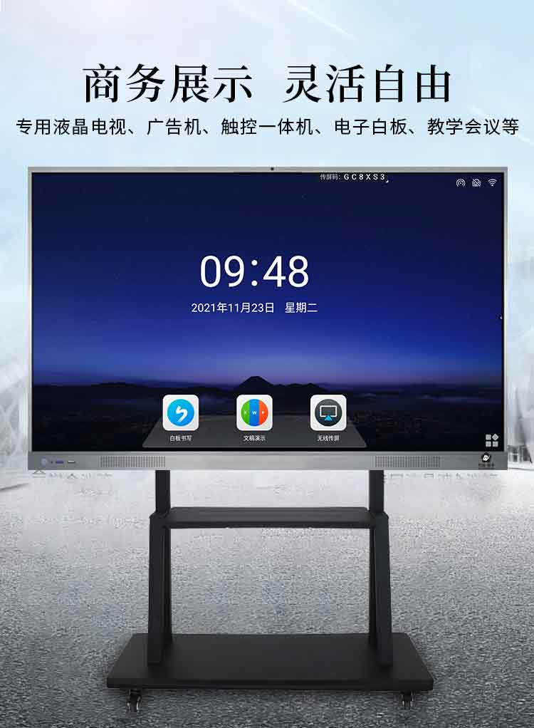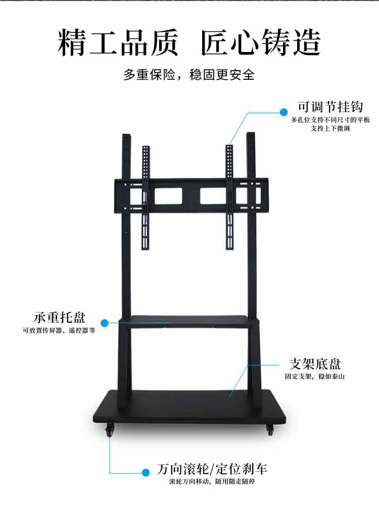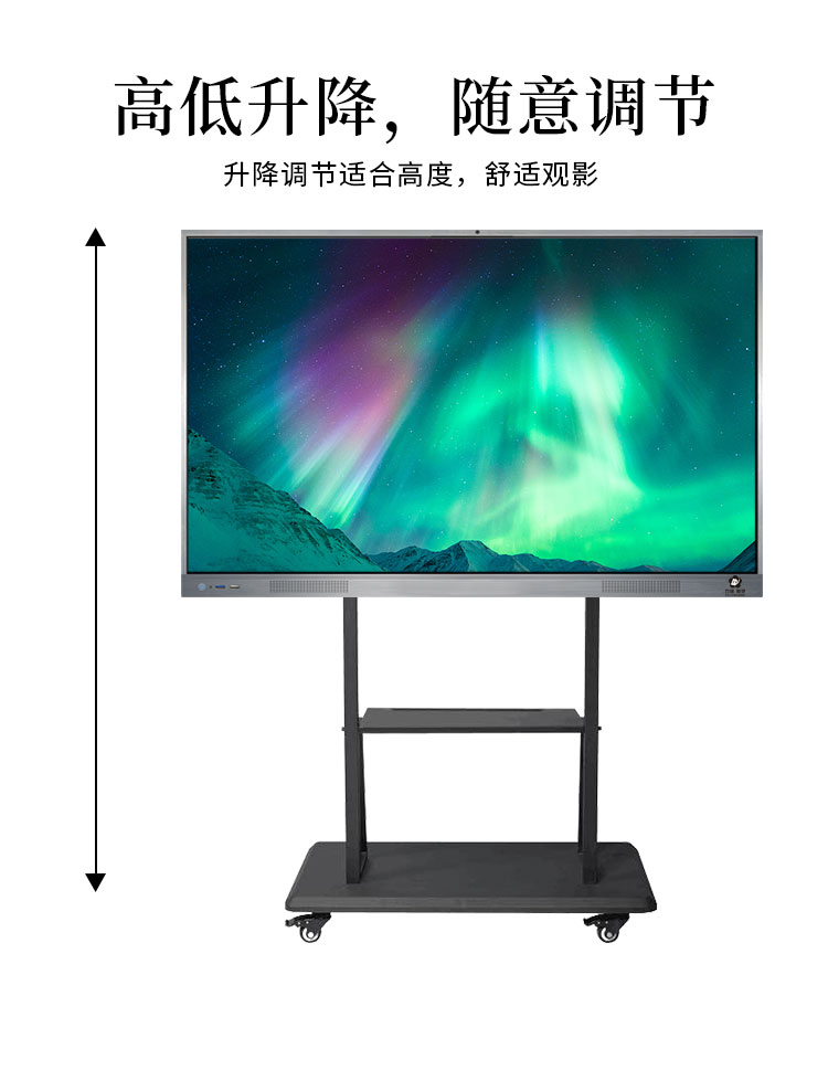 黑色教學(xué)會議移動支架專用液晶電視、廣告機(jī)、觸控一體機(jī)、電子白板、教學(xué)會議等,高低升降,隨意調(diào)節(jié)。