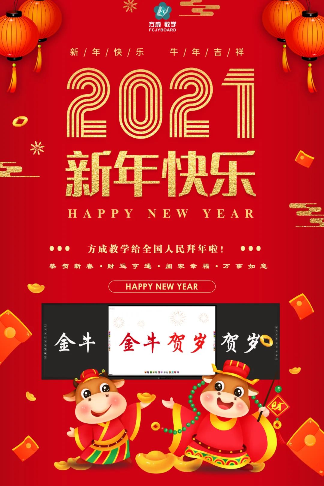 庚子鼠年騰大步,辛丑牛年如約到!值此農歷新春佳節之際,方成全體員工向11年以來一直支持我們的國內外客戶、用戶、朋友們,致以新年誠摯的祝福和衷心的感謝,祝大家年年順景,事事順心,“牛”轉乾坤,闔家歡樂!