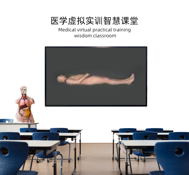 醫(yī)學虛擬實訓智慧課堂采用零貼合技術和電容觸控技術,4K 高清顯示屏,搭載數字化三維技術,虛擬人體結構解剖系統。觸屏交互操作,觸控操作可實現不同方位和層次人體結構的任意角度剖切、觀察。將人體解剖學、局部解剖學、斷層解剖學的知識融合起來 ,幫助醫(yī)學教育建立三維空間,實現互動體驗醫(yī)學教學。