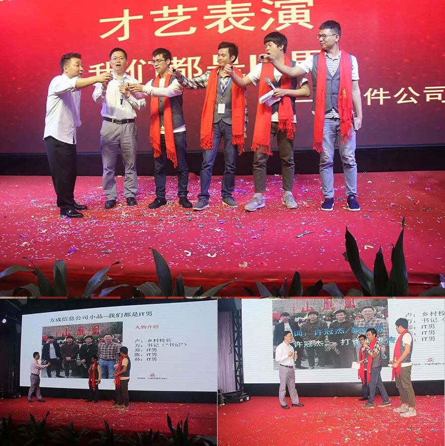 晚會舞臺上,方成教學、方成信息、方成制造全體員工分別獻上自導