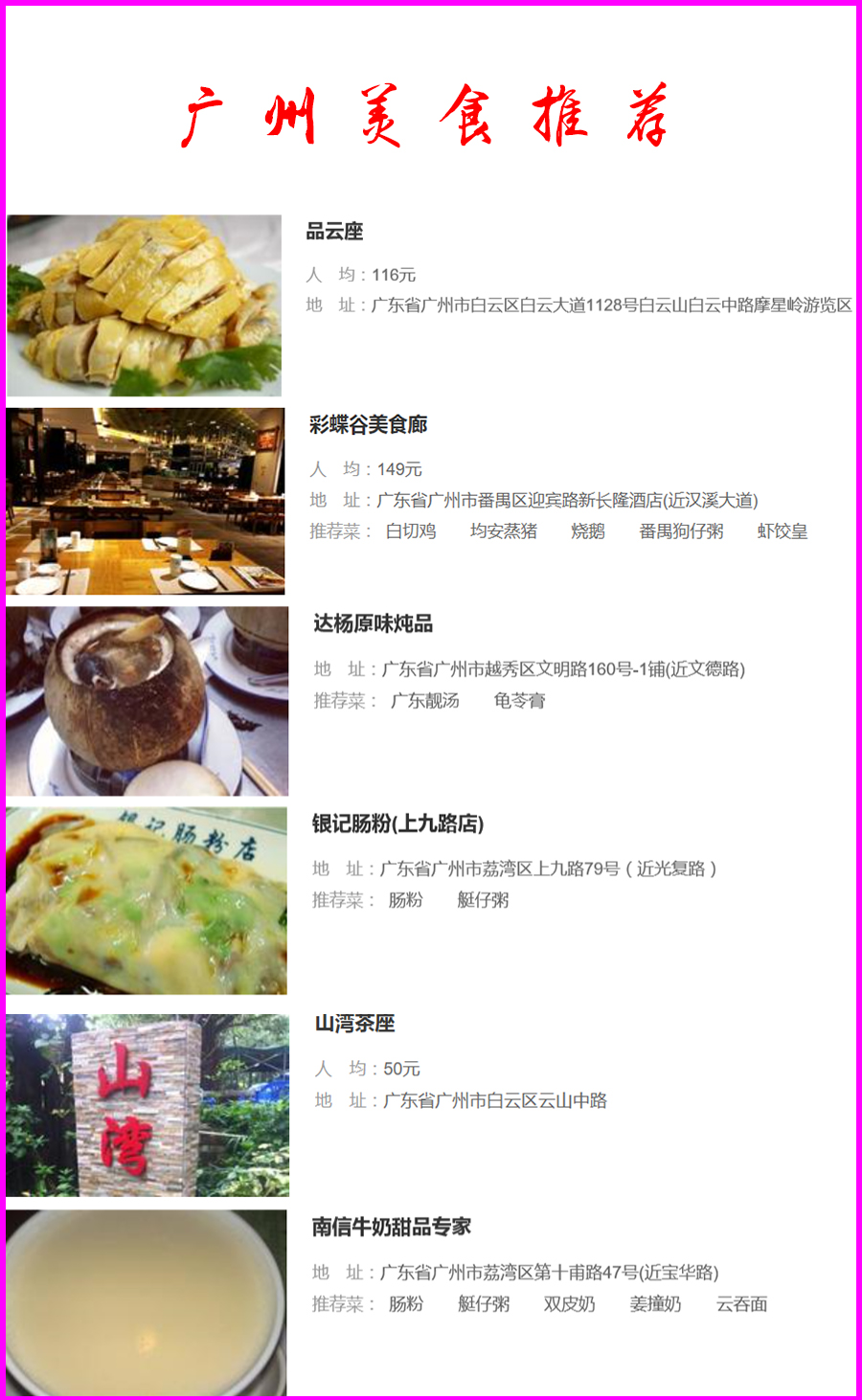 食在廣州”不是虛言。廣州飲食業歷來在全國首屈一指,擁有一大批經歷百年而不衰的老字號和新興名店,傳統和創新的名菜、名點、名小食、名風味食品不勝枚舉。飲茶、喝湯更是廣州一大特色,也成為當地一種獨特的文化。廣州名菜廣州菜是粵菜的主體和代表。粵菜的烹調方法有二十一種之多。下面小編就給你介紹介紹吧: