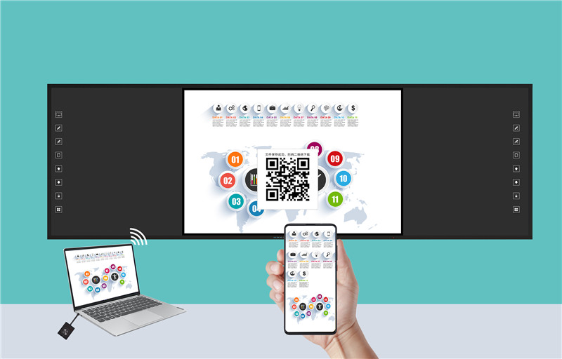 掃碼分享可一鍵存云端:方便學生、家長、老師在課后復習查閱。多人同時書寫記憶:支持20點同時書寫,讓課堂教學更加豐富多樣。板書記憶雙系統同步:支持Windows/Android實時切換,雙系統智能存儲,將教學板書保存并轉化為數字資源。推拉門鎖裝置和下拉式模塊化設計:1人輕松維護,讓設備安裝維護更加簡易安全。