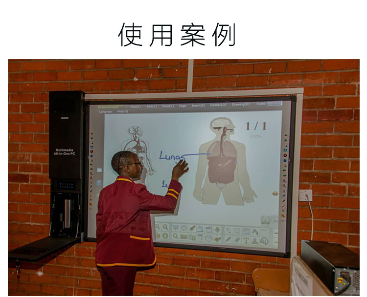 高互動性——高靈敏度無線鼠標鍵盤和無線話筒,可隨意暢游教室內的任何位置,學生也可參與多媒體教學的全過程