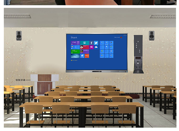 高集成化——滿足常規的多媒體教室功能要求,將功放、音響、電腦等多媒體設備高度集成,無需電子講臺、液晶顯示器等設備占據寶貴的教室空間,干凈整潔